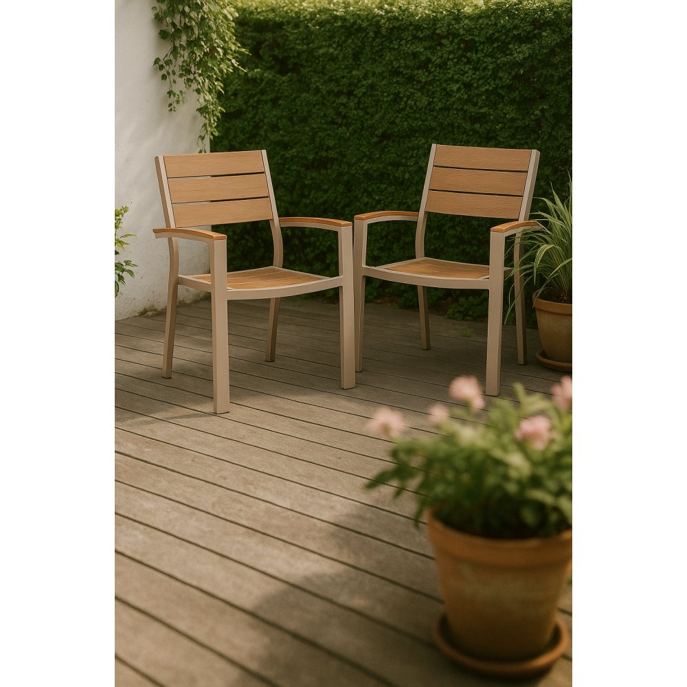 Den beigelackerade aluminiumstommen är lätt, rostfri och kräver minimalt med skötsel. Noonwood är ett tåligt plastmaterial med träkänsla, framtaget för att stå emot både sol, regn och temperaturskiftningar. Perfekt för dig som vill lägga mer tid på att njuta – och mindre på att underhålla.