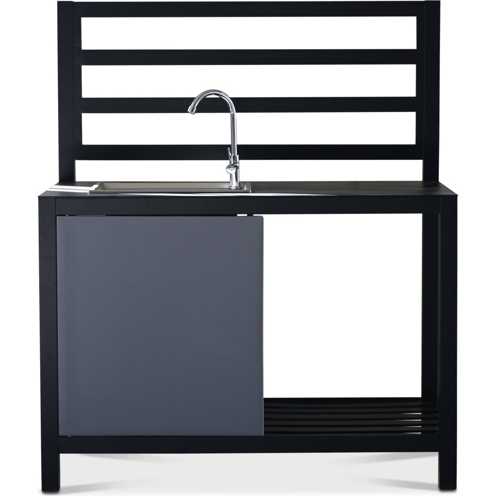 Perfekt till mysiga grillkvällar och familjeträffar på altanen och uteplatsen. Stommen är byggd i lackad metall och en rostfri vask med kran.