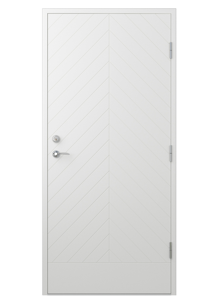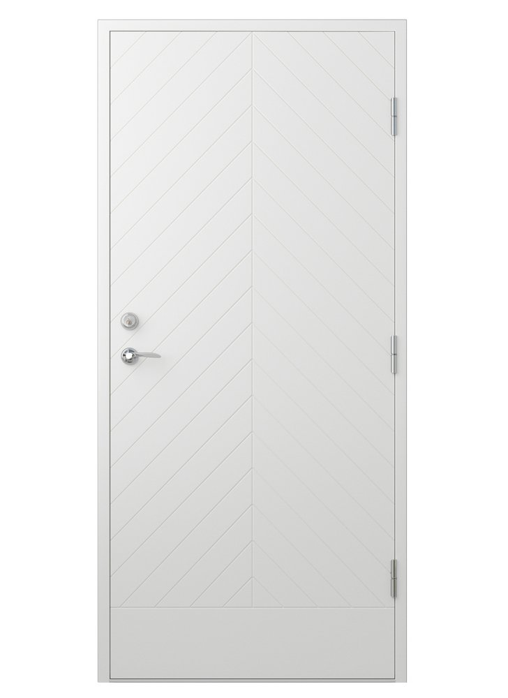 Ytterdörr Amelia har ett snedrandigt spårfräst mönster som en härlig dekor på denna rejäla dörr. Med denna dörren dras somligas tankar till sommarstugan eller timmerstugan i fjällen. Dörren passar även till garaget eller förrådet där många gärna har insynsskyddat, såsom till det moderna huset eller det klassiska.